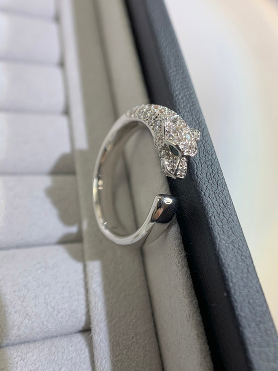 Cartier micro-inlaid half diamond leopard ring-3670