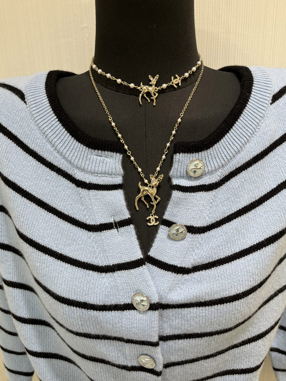 Chanel Golden Deer Full Diamond Double C Pearl Necklace-3749