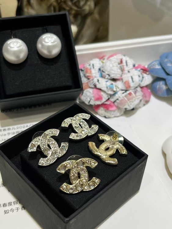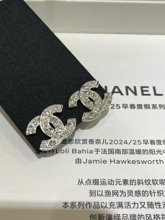 Chanel star heart crystal pearl silver double C earrings-3752