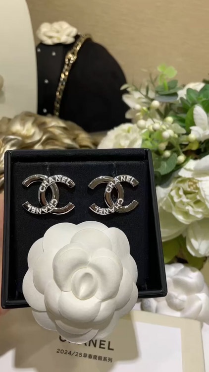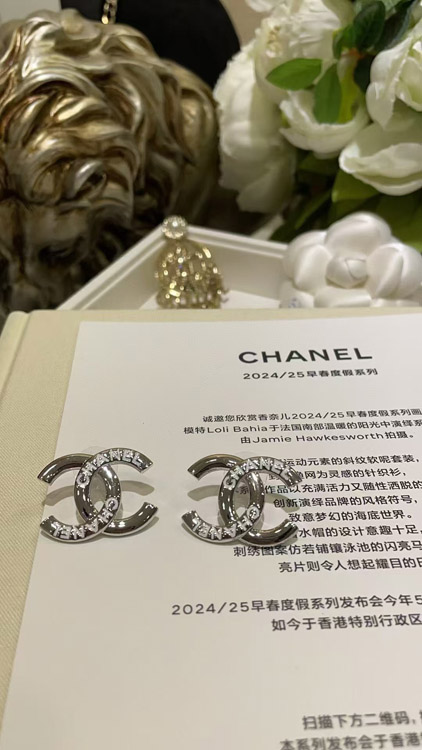 Home > Chanel White Enamel Double C Silver Earrings-3743