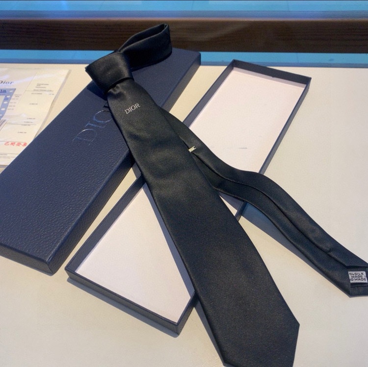Christian Dior Classic Letter-Embroidered Silk Tie-6582