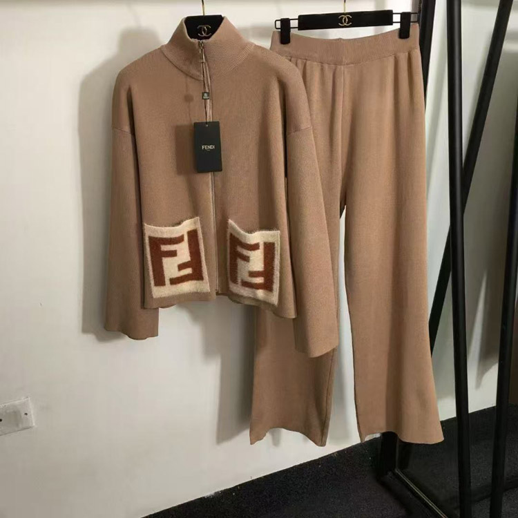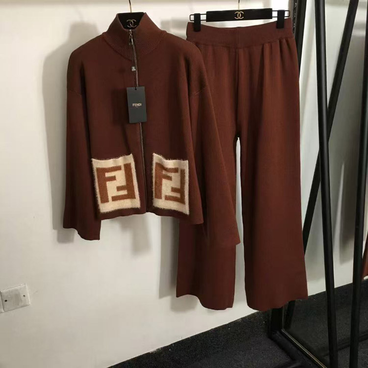 Home > Fendi new knitted set with zipper and F-logo pockets-5376