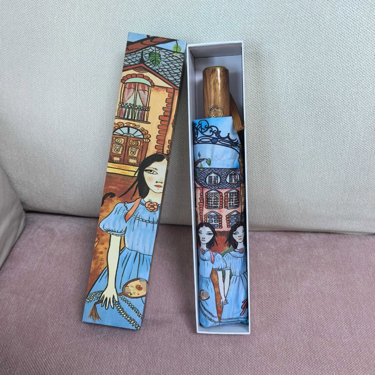 GUCCI Vintage Girl Illustration Folding Umbrella-6528