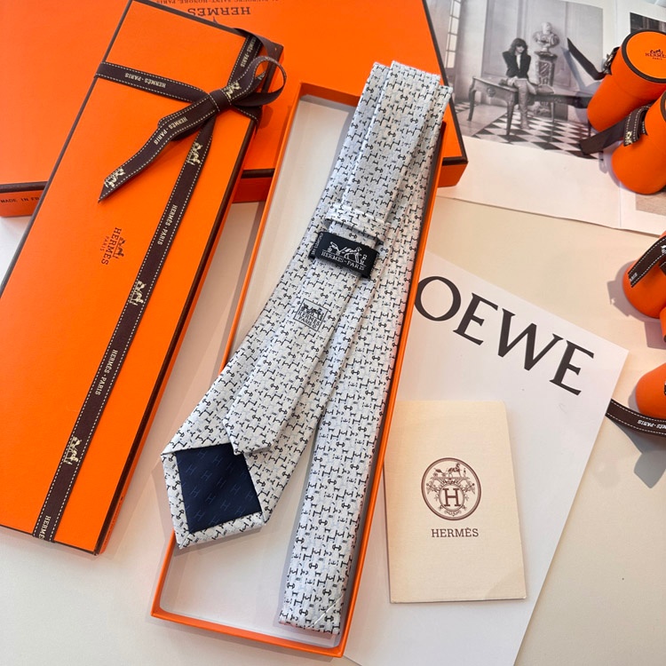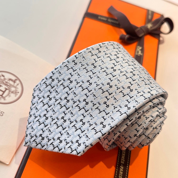 Hermès Light Luxury Silk Business Tie with All-Over Horsebit Pattern-6547