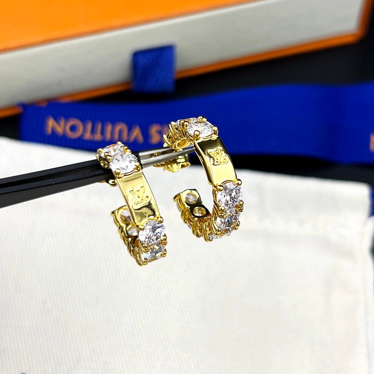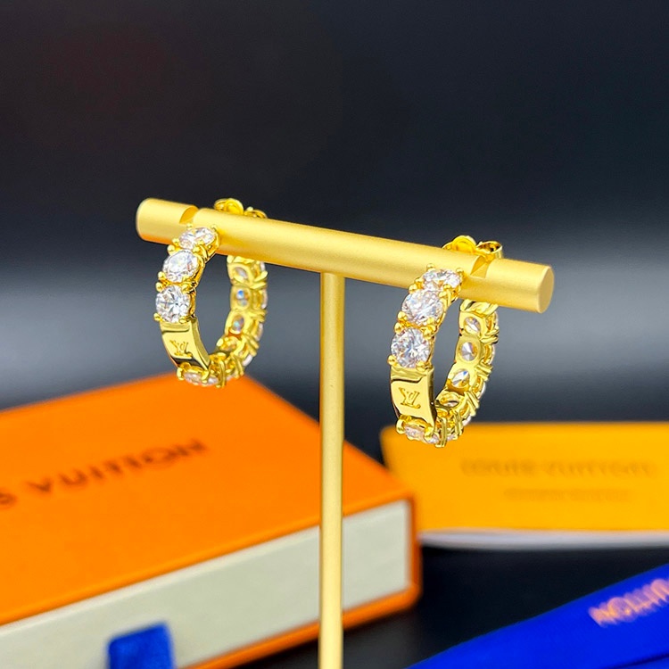 Louis Vuitton LV full diamond earrings round cut zircon earrings-3573