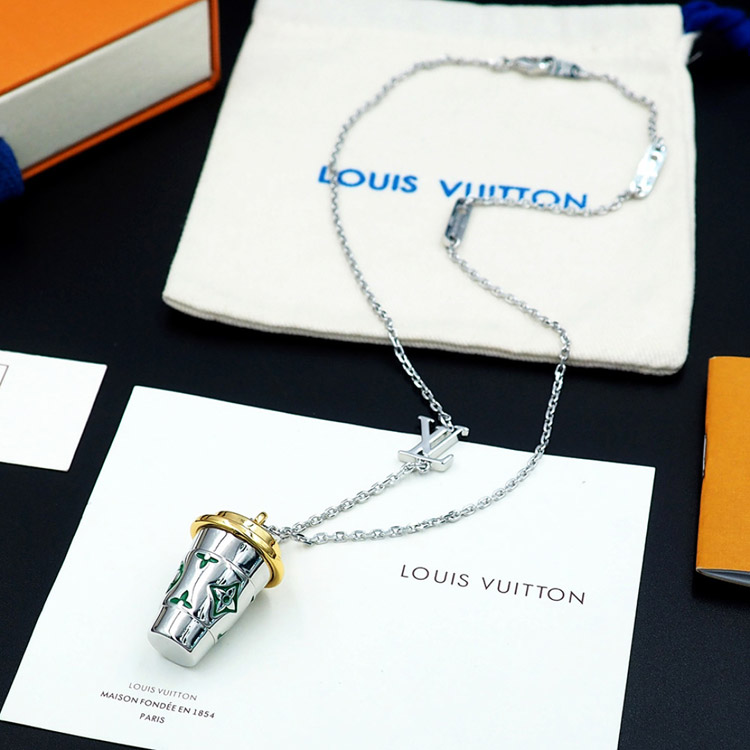Louis Vuitton LV Letter Floral Enamel Inscription Miniature Coffee Cup Necklace-3915