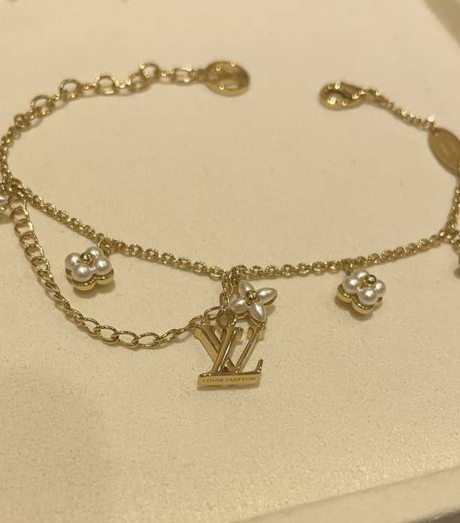 Louis Vuitton LV Letter Floral Pattern Pearl Gold Bracelet-3724