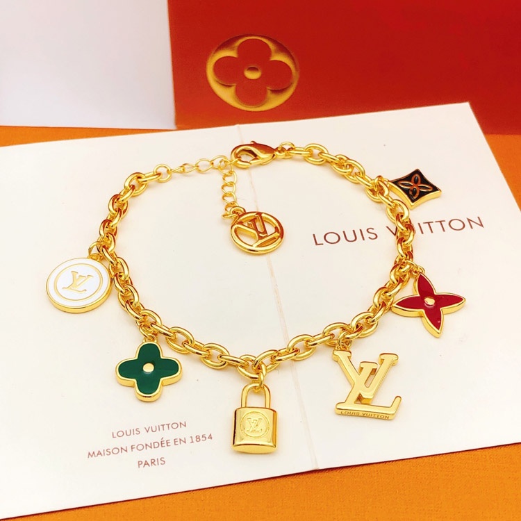 Louis Vuitton LV Letter Flower Lock Stone Color Drop Oil Bracelet-3874