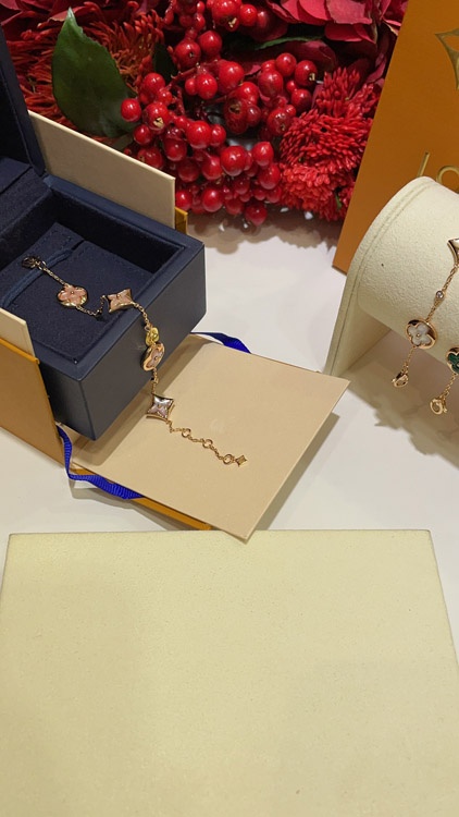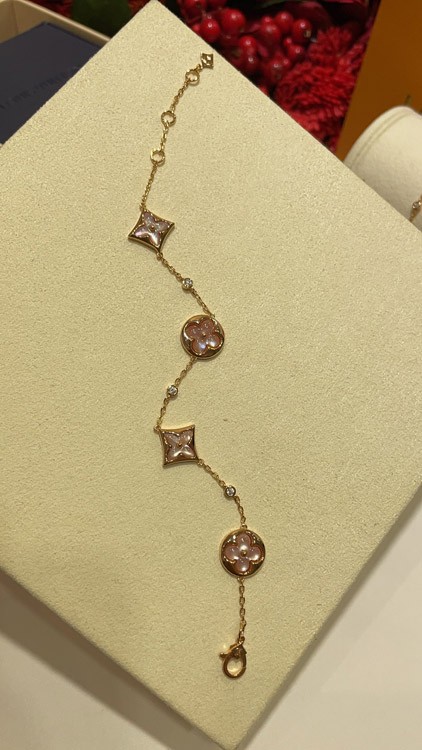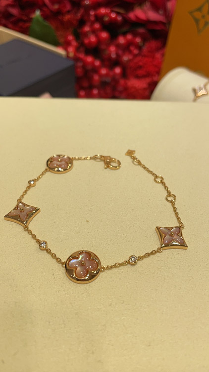 Home > Louis Vuitton LV Pink Mother-of-Pearl Floral Four-Leaf Clover Rose Gold Bracelet-3728