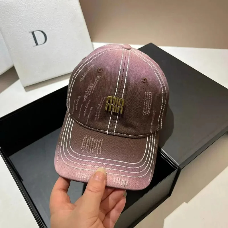 Home > Miu Miu Distressed soft top denim cotton sun protection baseball cap-2728