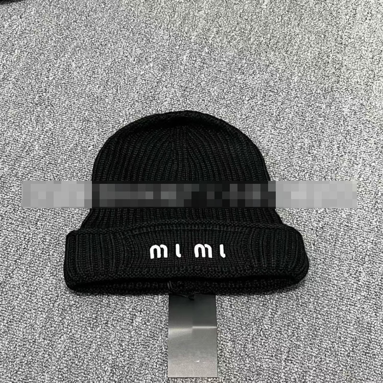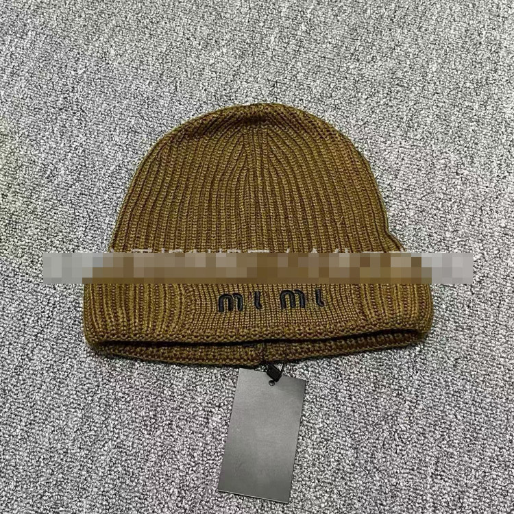 Miu Miu letter-embroidered ear-warming knitted hat-5845