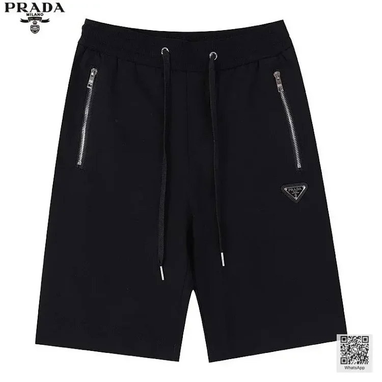 Prada Cotton Zipper Pocket Triangle Shorts Loose Cropped Pants (4 styles)-2879