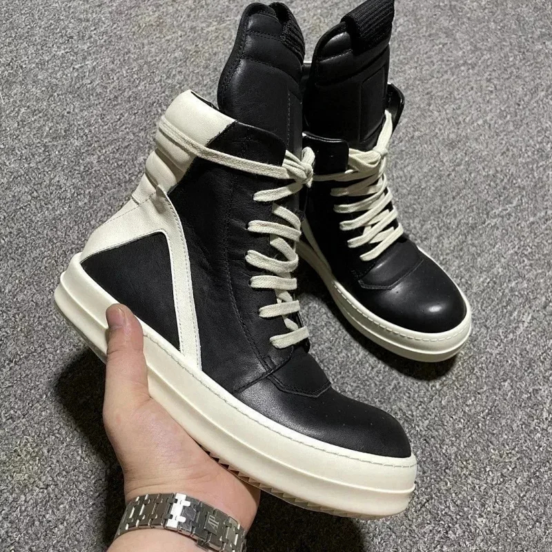 Home > RICK OWENS/RO Edfu leather semi-gloss finish high-top fashion sneakers-2945