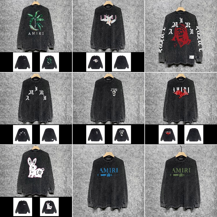 AMIRI Washed Distressed Print Casual Long-Sleeve T-Shirt-5520