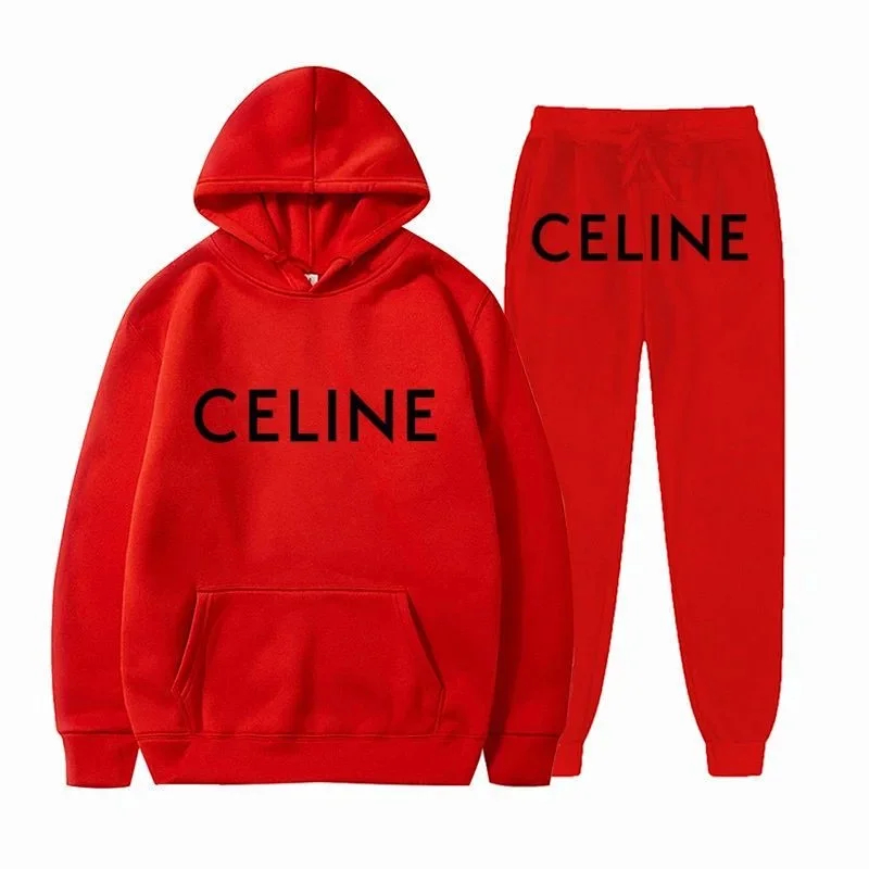 Celine New Print Letter Loose-fitting Hooded Sweatshirt Set-5516
