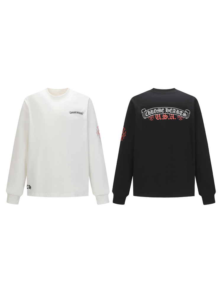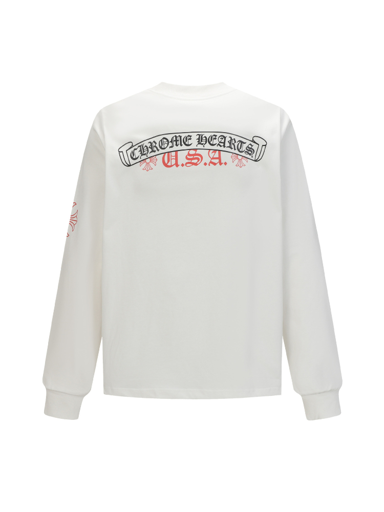 Chrome Hearts CH Cross Sanskrit Print Double-Layer Cotton Long-Sleeve T-Shirt-5437
