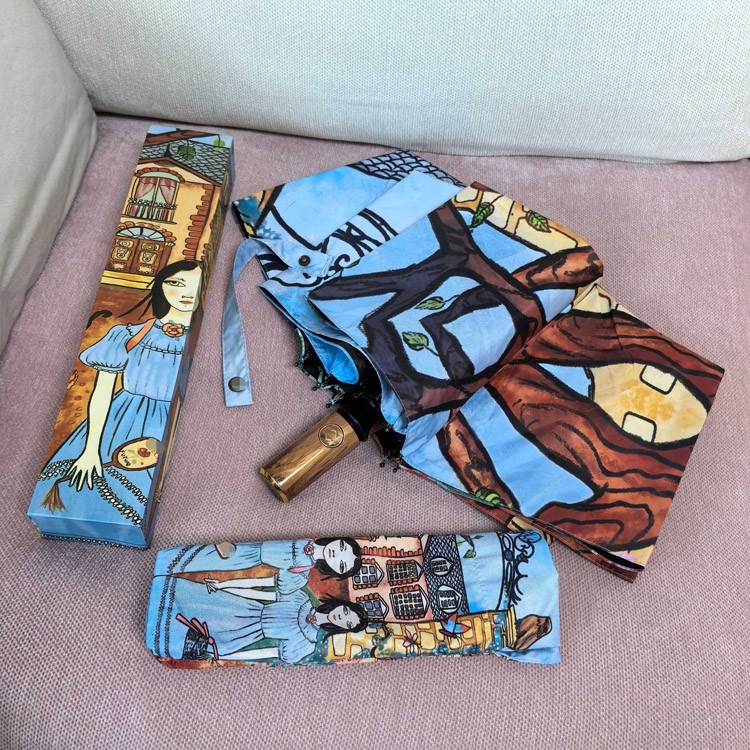 GUCCI Vintage Girl Illustration Folding Umbrella-6528