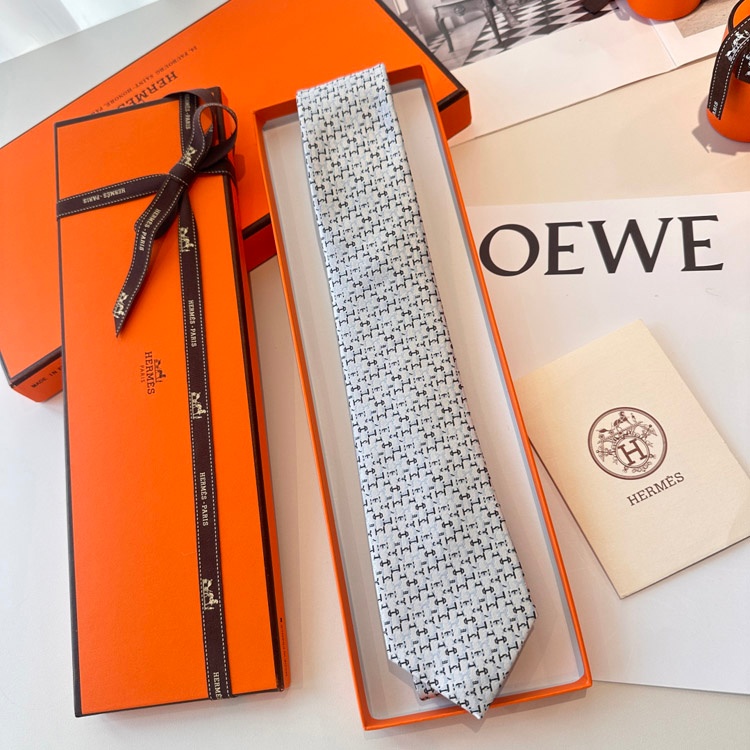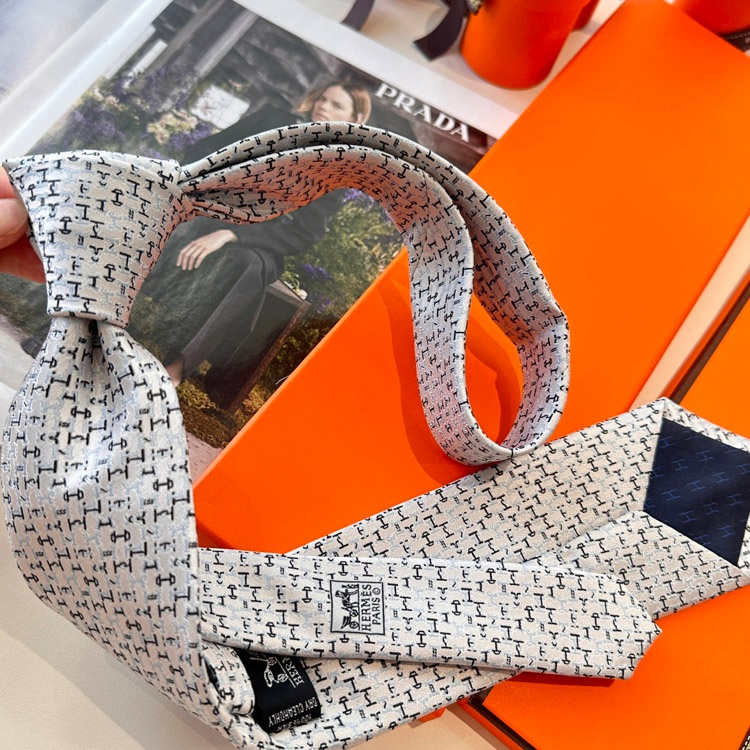 Hermès Light Luxury Silk Business Tie with All-Over Horsebit Pattern-6547