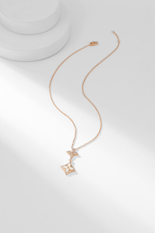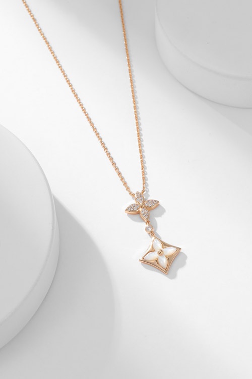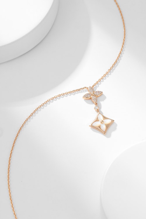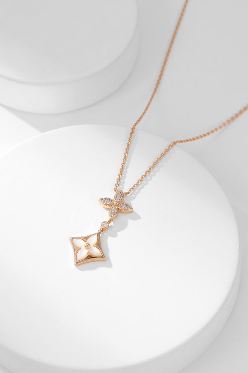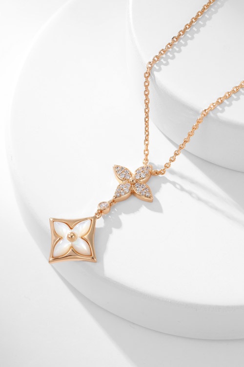 Louis Vuitton LV floral pattern diamond-set mother-of-pearl necklace-3860