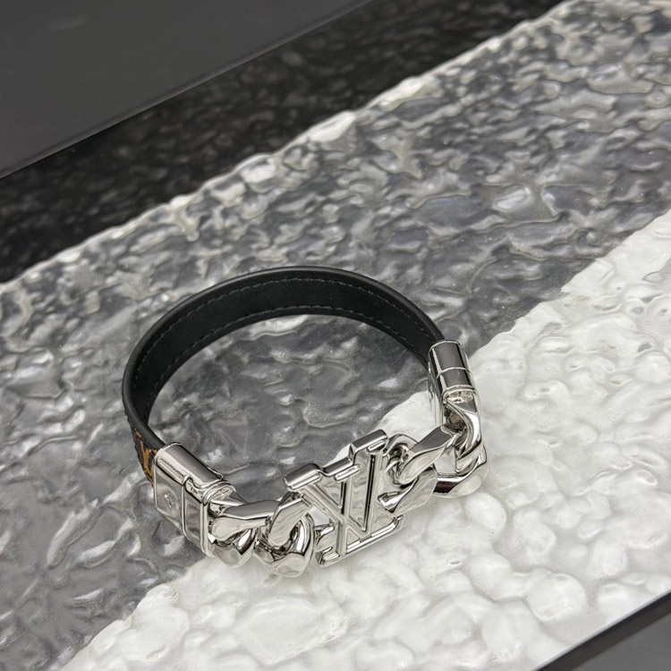 Louis Vuitton LV leather metal chain ring with engraved letters on both sides of the bracelet-3870