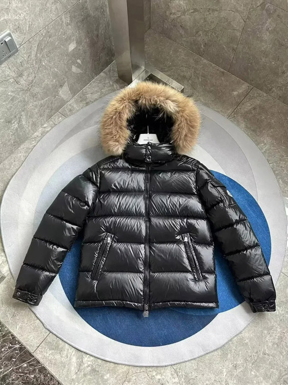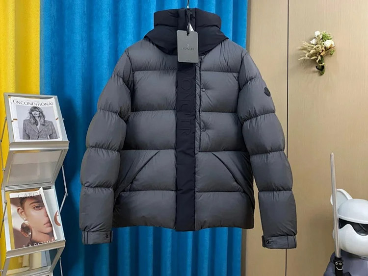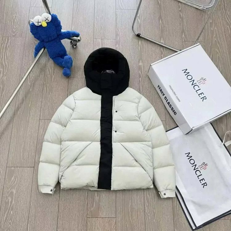 Moncler Michael letter print color block zipper long sleeve stand collar down jacket-4289