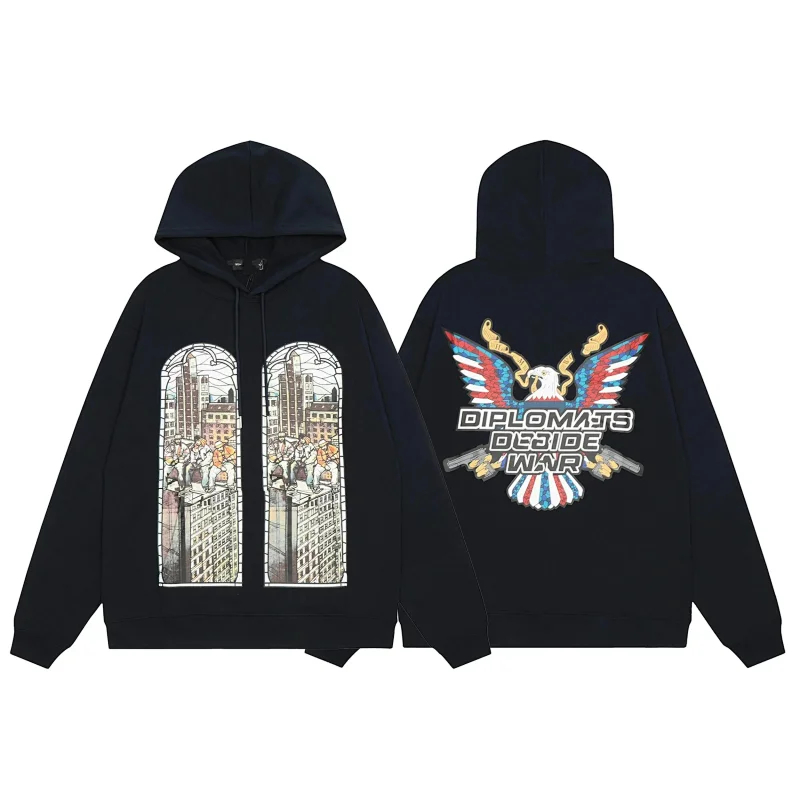 Who Decides War New embroidery print American trend high street washed hooded sweatshirt-2553